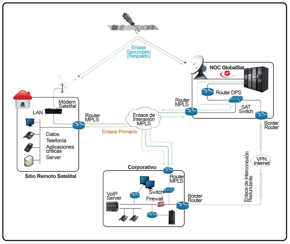 Esquema Red de Respaldo Satelital con Enlace de Interconexión Redundante